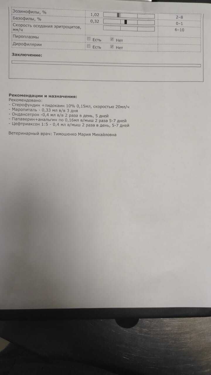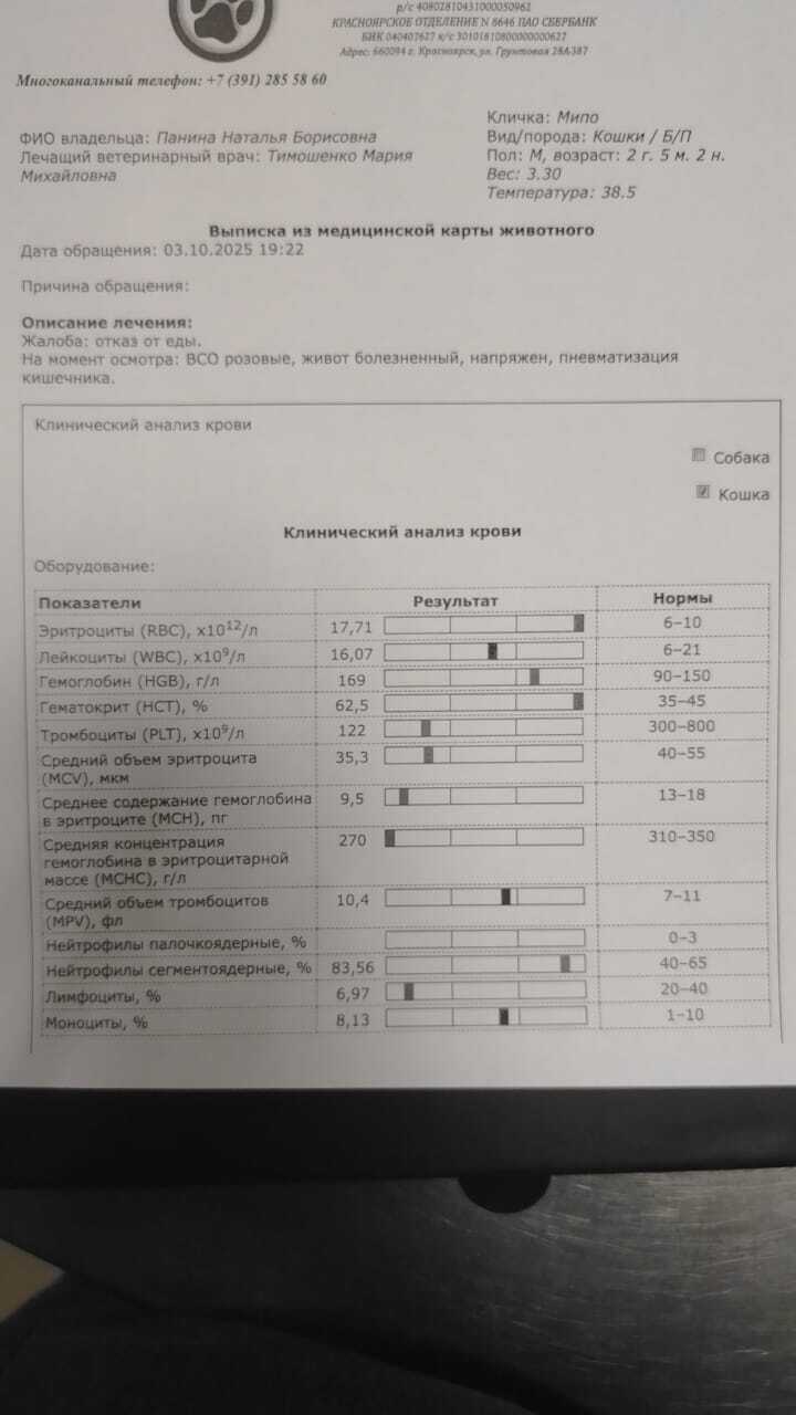 Миппо пока не ест. Кишечник воспален. Гемоглобин низкий...