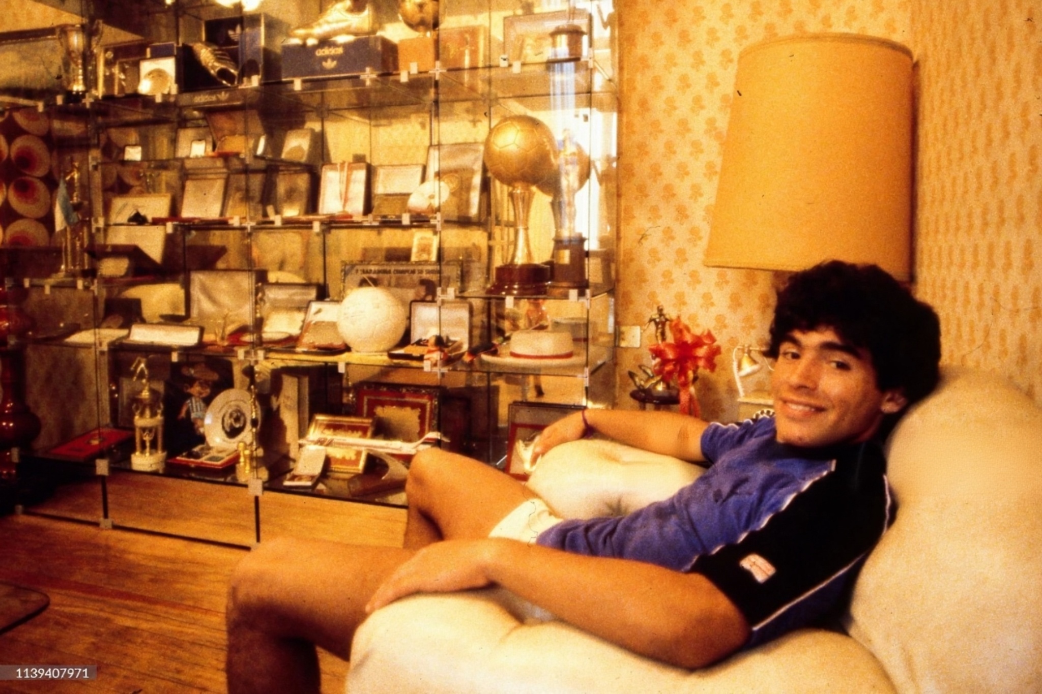 Диего Армандо Марадона из "Архентинос Хуниорс", во время фотосессии у себя дома, в Буэнос-Айресе, Аргентина, 27 марта 1980 года. Фото Мишеля Барро.
