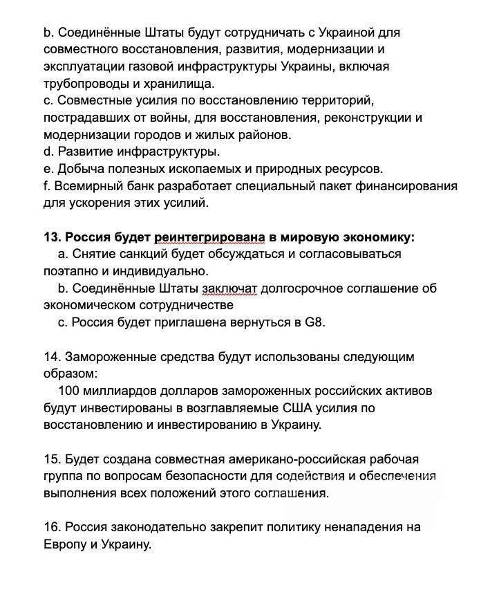 Вот и появился "слив" мирного плана, который сегодня США показали Киеву. Опубликовал его народный депутат Украины Алексей Гончаренко.