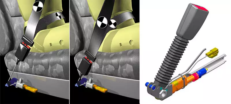 В пару подушкам безопасности придумали пороховые преднатяжители ремня безопасности. Пороховые газы приводят в действие механизм, который натягивает ремень, убирая зазор от излишней длины ремня, которым пристёгнут пассажир. Так ремень начнёт удерживать тело сразу при ударе в ДТП.