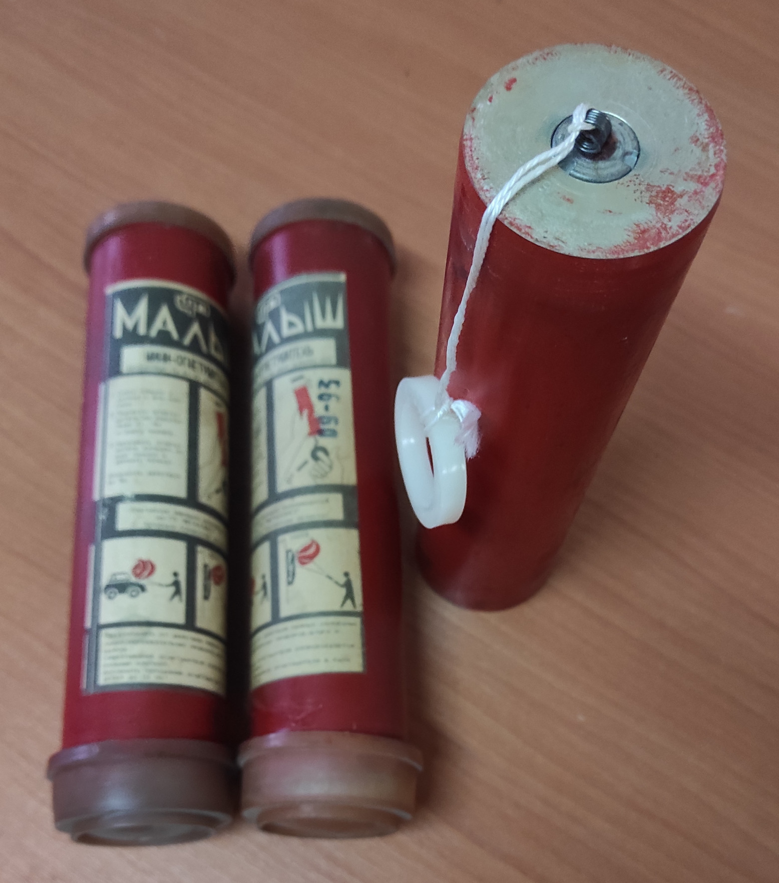 Огромная хлопушка, в которой вместо конфетти огнетушащий порошок. Испытавшие его часто говорят о синяке на ладони от отдачи. Похожая идея заложена в самосрабатывающие огнетушители — в них при превышении температуры пороховые газы разрывают корпус и разбрасывают огнетушащий порошок.