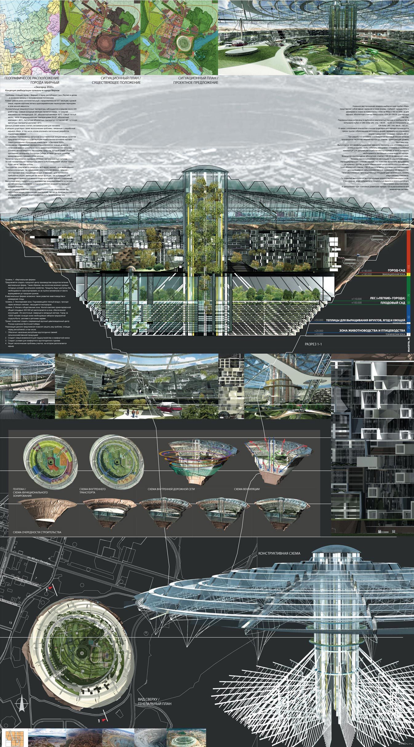 Неподалеку города Мирный в Якутии есть огромный карьер, оставшийся после промышленной добычи алмазом. Этот карьер, диаметром более 400 метров и глубиной около 520 метров, является вторым по величине искусственным отверстием в поверхности планеты. Величина этого карьера такова, что потоки и завихрения воздуха, создаваемые им, могут буквально сбросить на землю летящие вертолеты и легкие самолеты. Российское архитектурное бюро «АБ ЭЛИС» разработало проект «Экогород 2020», предлагая накрыть это карьер светопроницаемым куполом, превратив его в многоуровневый подземный цветущий город.