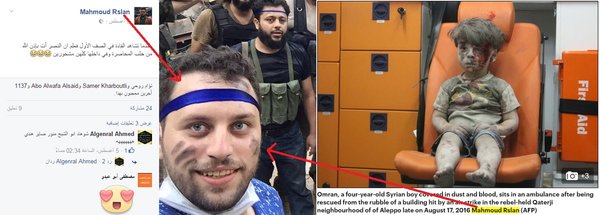 1) "журналист"-террорист в синем, рядом с другими террористами в Алеппо.