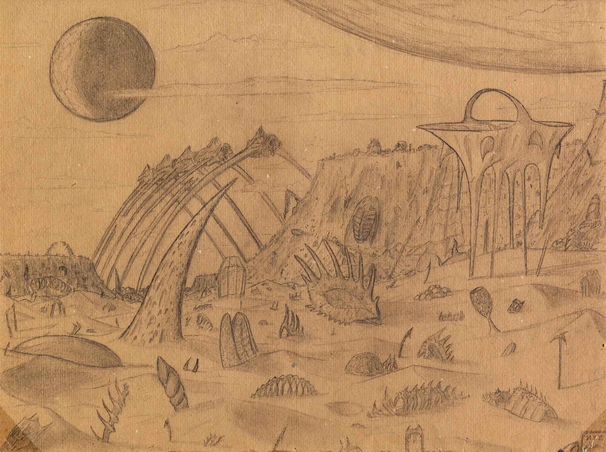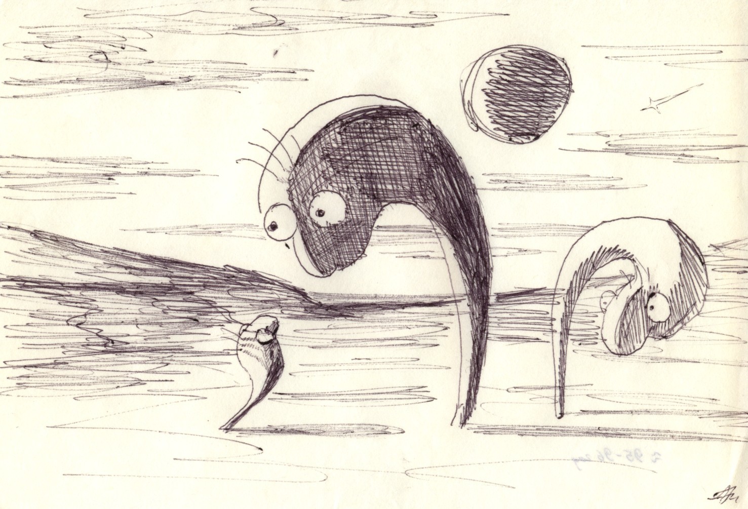 Сканы рисунков, из 90-х. Рисовались они на чем придётся, поэтому бумага часто разного цвета. Сюрреализм, космос, виртуальная реальность. Большинство этих рисунков я делал в школьные годы, лет 25 назад, под наваждением внутренних космогонических фантазий и сумрачной электронной музыки, - в частности, Klaus Schulze.