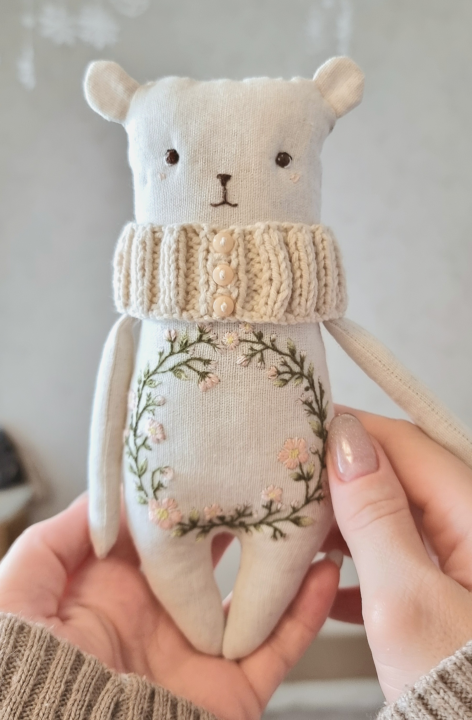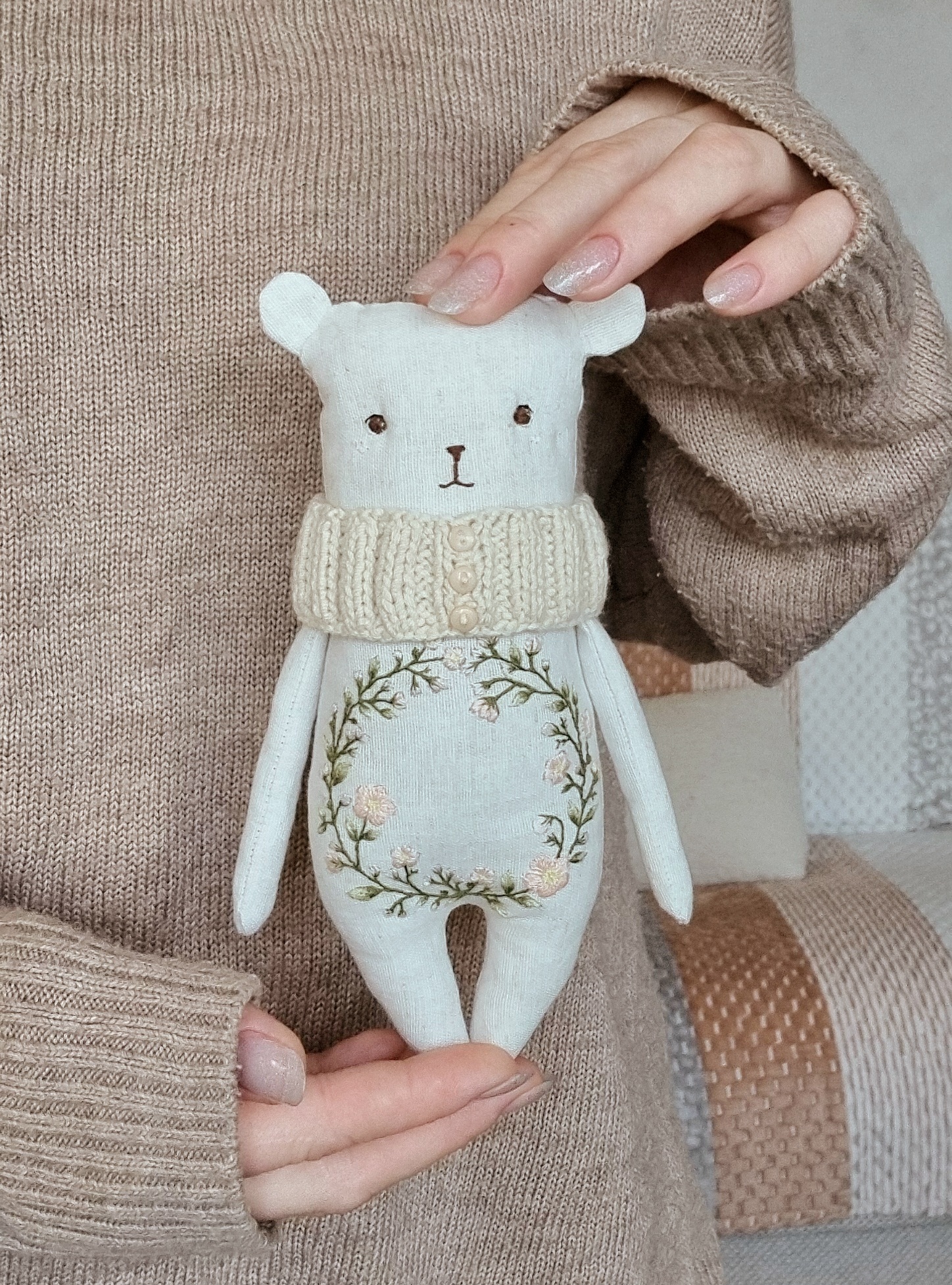 Материалы: ткань лён, вышивка - мулине (техника Гладь), пряжа Yarn Art Jeans, пуговки 5 мм, наполнитель холофайбер.