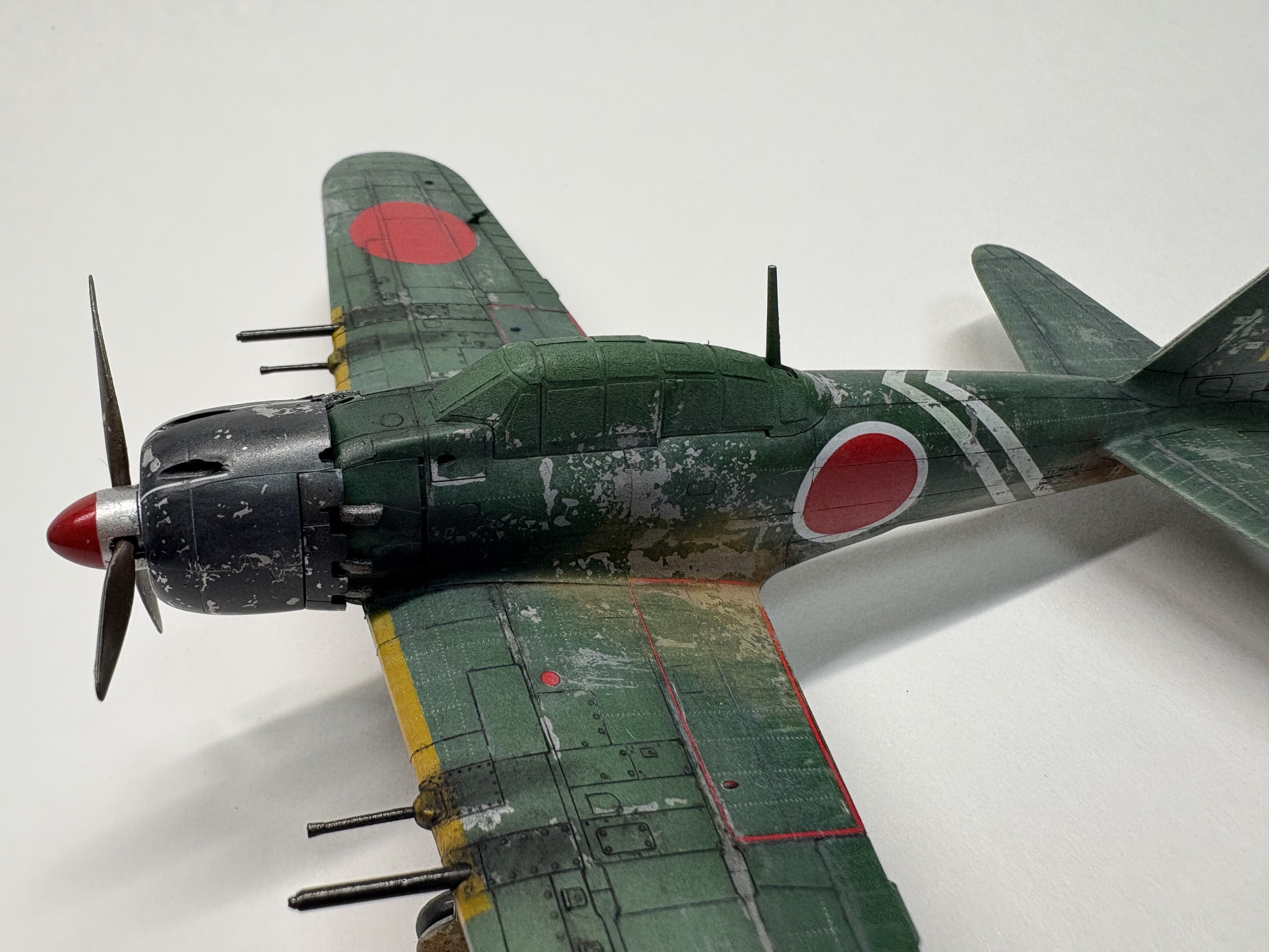 Заканчиваю серию с Zero от Hasegawa в 72-масштабе. История эта длилась почти год. Начинал с первого массового Райсена, когда еще не знал очень нужных и важных вещей, техник, в том числе, правил обращения с аэрографом и соответствующей химией. В итоге: шершавая поверхность, густой лак, проблемы со смывкой.