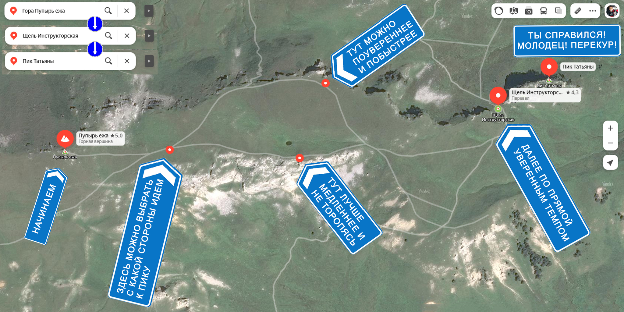 Шаг 2: Неторопясь и нежно, удобным для вас маршрутом начинаем двигаться к точке "Инструкторская Щель"