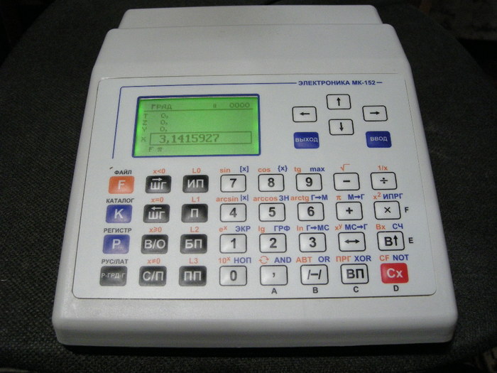 В 1980 году вышел калькулятор второго поколения — «Электроника Б3-34». Девайс был тяжёлый и основательный, и впоследствии сделали более компактный МК-54, настольный МК-56, демонстрационный «Программист» (в нашей школе он был, но никто не видел его работающим). Все три полностью совместимы (только ранние Б3-34 не работали с углами в градах).
