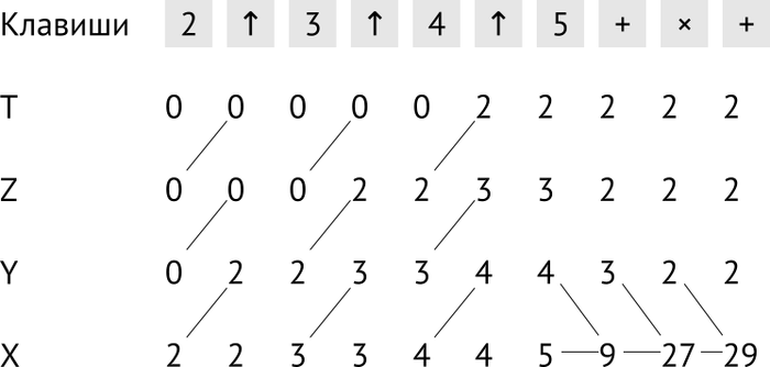 То есть память на подобные вычисления имеет глубину 4, и эти регистры зовутся X, Y, Z и T.