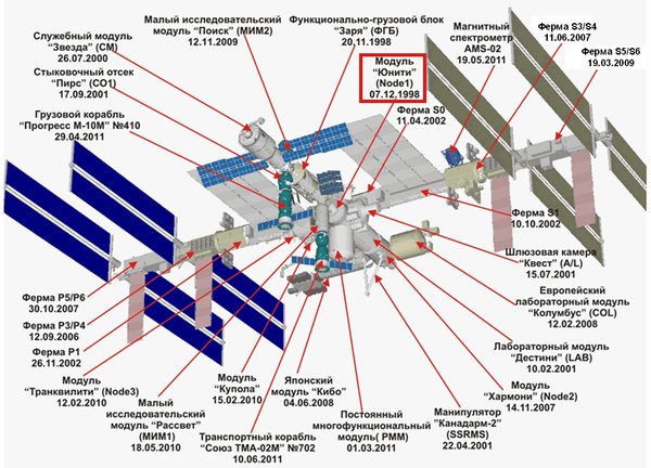 7 декабря 1998 года экипаж шаттла «Индевор», присоединил модуль «Юнити» к ранее запущенному ракетой-носителем «Протон», модулю «Заря».