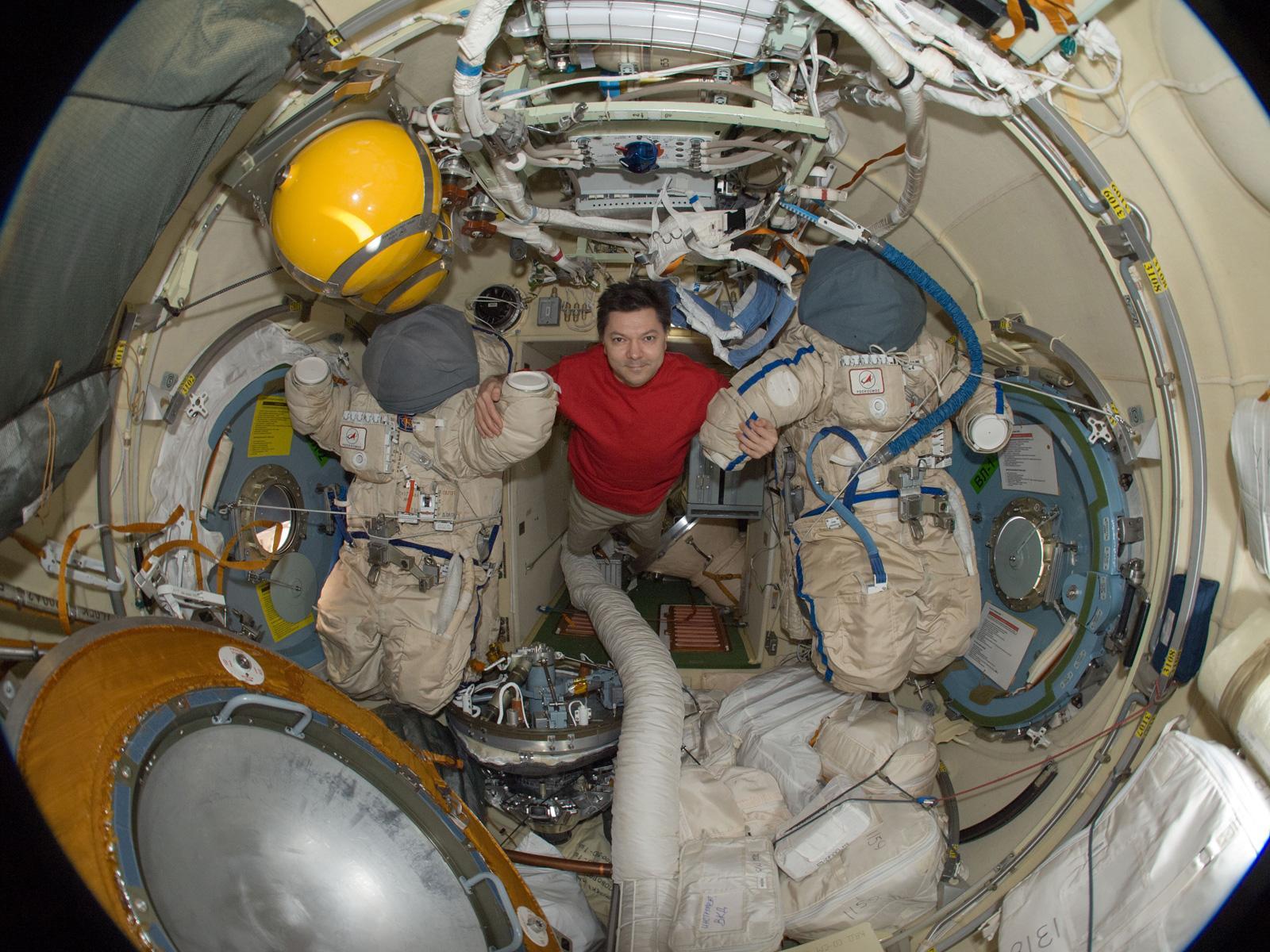 Два блока сопряжения БСС обеспечивают шлюзование двух членов экипажа в скафандрах “Орлан-М”.