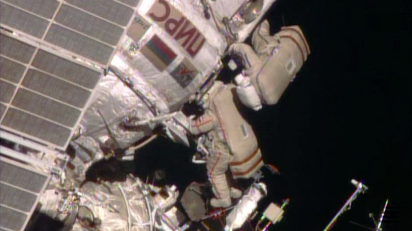 16.02.2012 в 18:31 (по московскому времени) космонавты Олег Кононенко и Антон Шкаплеров вышли в открытый космос. Бортинженеры выполнили перенос 40-метровой грузовой стрелы ГСтМ1 со стыковочного отсека «Пирс» и установку её на малом исследовательском модуле «Поиск». Эта операция проводится с целью освободить от полезного оборудования модуль «Пирс», чтобы начать новое строительство МКС, на место модуля «Пирс» планируется пристыковать многофункциональный лабораторный модуль «Наука». Вся внекорабельная деятельность заняла 6 часов 15 минут.