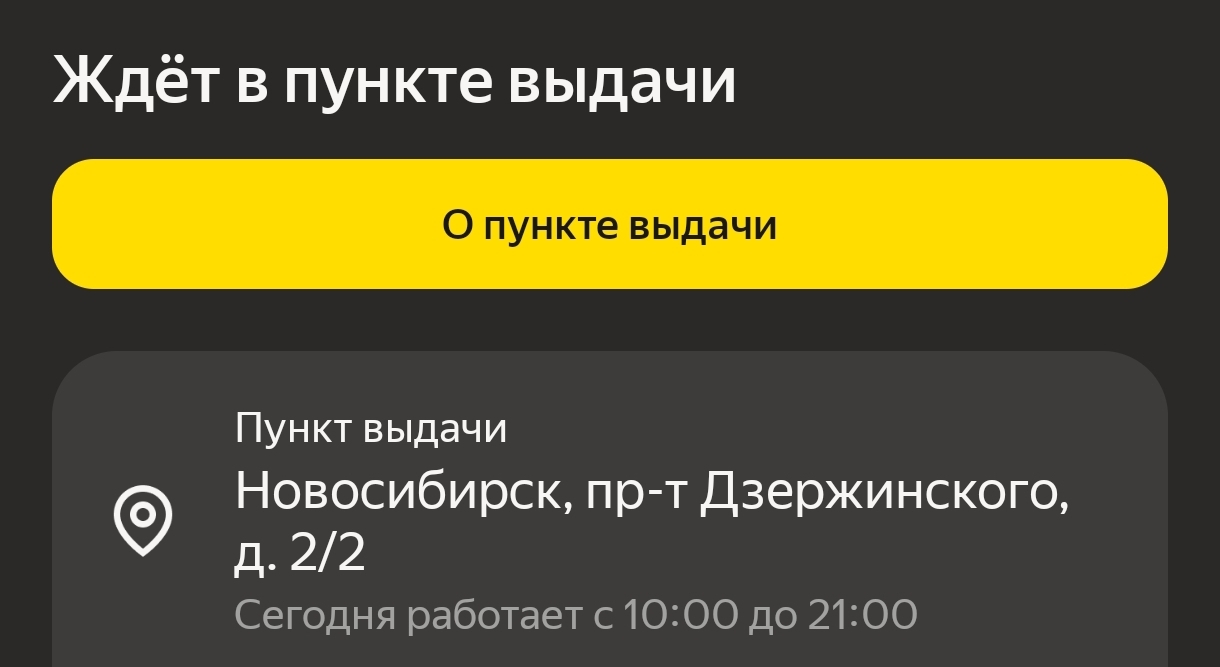 Утром 2 декабря приложение мне отрапортовало, что заказ уже ждёт меня в пункте выдачи. Вечером того же дня я выдвинулась его забирать (обычно стараюсь выбирать ПВЗ максимально близко к дому, но в этом случае приложение почему-то предоставило мне на выбор всего один доступный пункт, до которого пришлось тащиться на транспорте. Возможно, это должно было навести меня на какие-то мысли, но увы).