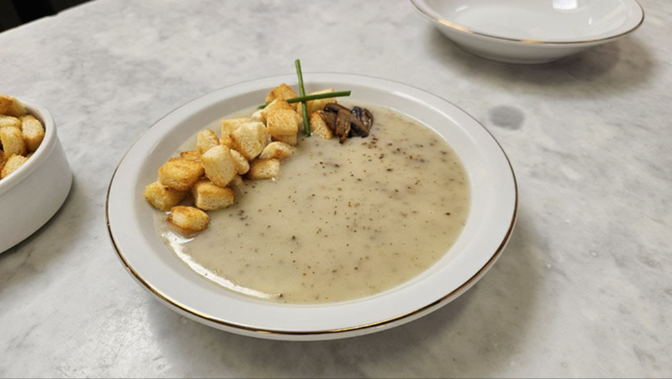 Дело было так. Новая препод руководит всем нашим кулинарным адом в свой первый рабочий день. На уроке тема — бульоны как основа для супов и соусов. И чтобы не мелочиться, мы должны приготовить сразу три супа: французский луковый, вишисуаз и суп-пюре из шампиньонов. Под её руководством и по её рецептам, конечно же. Сначала много рассказывает: бульон должен быть максимально нейтральным, солить его не нужно, потому что бла-бла-бла