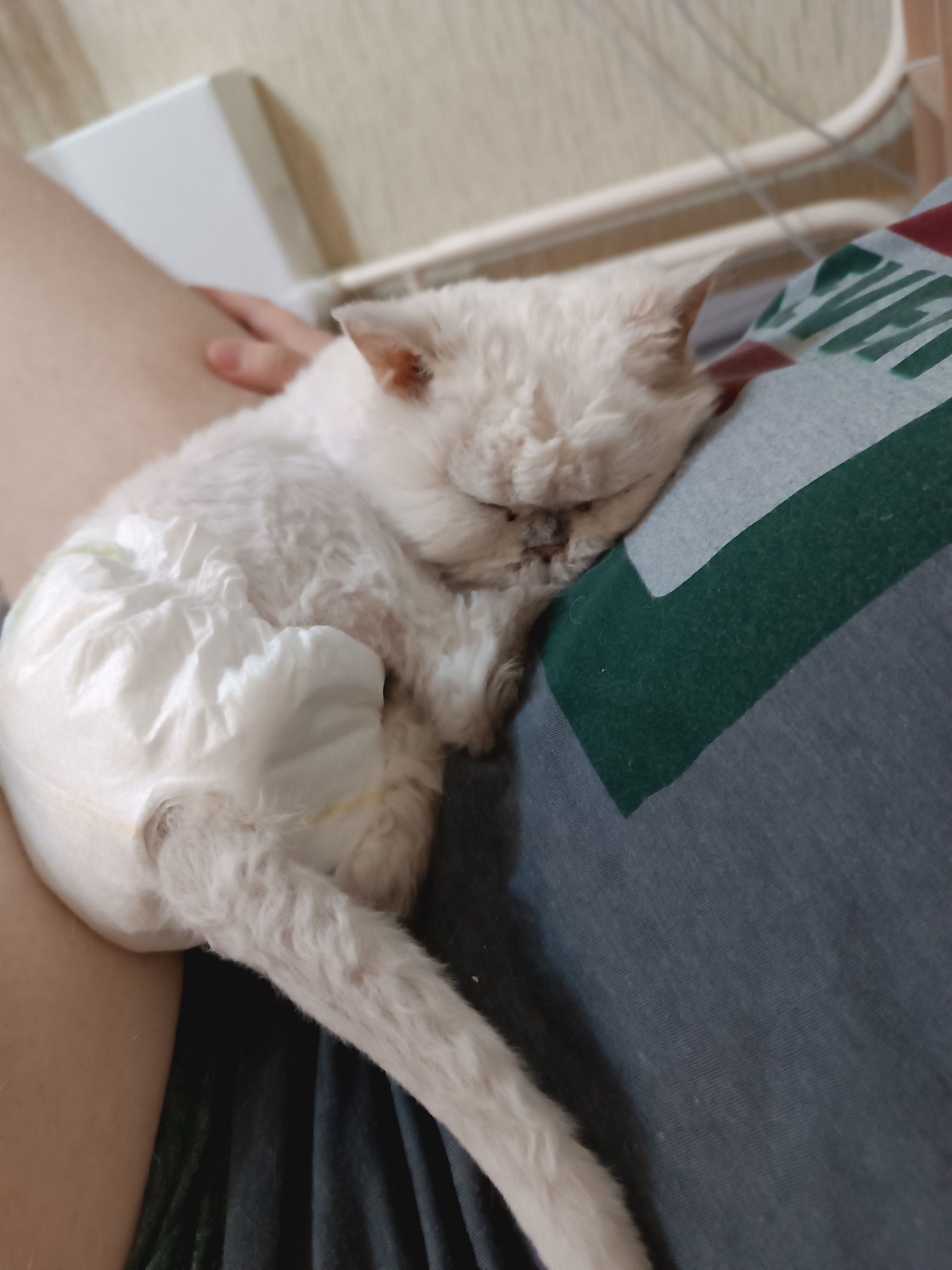 Ужасная небрежность. Мышка запаниковала и соскользнула. Я не сообразил, что она может побежать за спину, а не вперед, и не успел ничего сделать. Она упала на пол с высоты около метра.