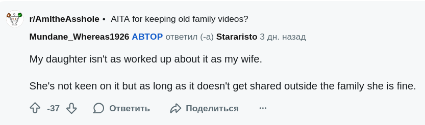 Так что мудак ли я за отказ удалить мои собственные семейные видео даже если какие-то из них содержат неприятные смущающие кого-то воспоминания?