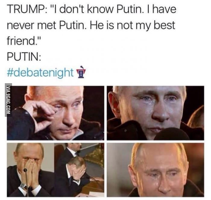 BelkoPushistik Мне его так жаль 9 лет назад Трамп: "Я не знаю Путина. Я никогда его не встречал. Мы с ним не друзья." 9GAG Перевод Выборы в США Владимир Путин Политика Картинка с текстом