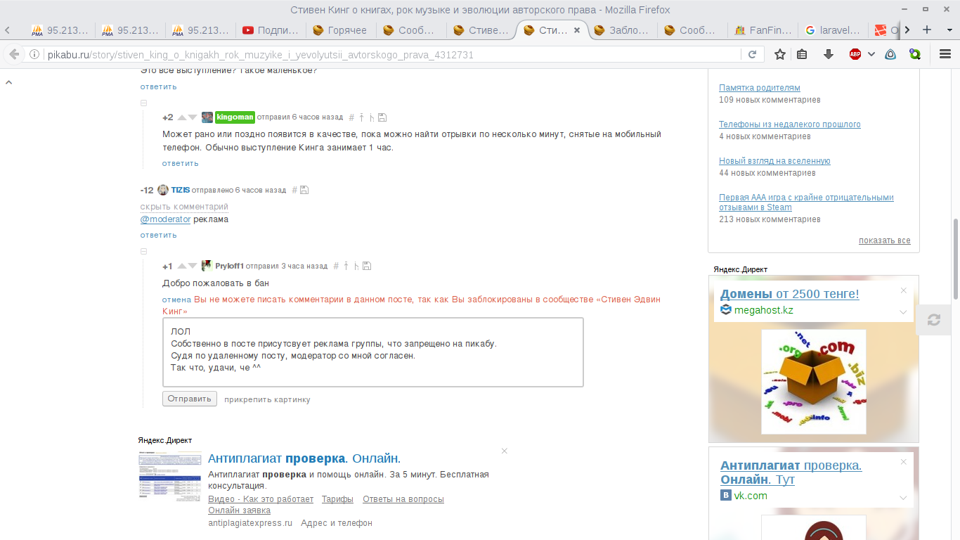 Суть: листал свежее, наткнулся на вроде бы рекламный пост (насколько я помню прямое указание ссылки запрещено), вызвал модератора.