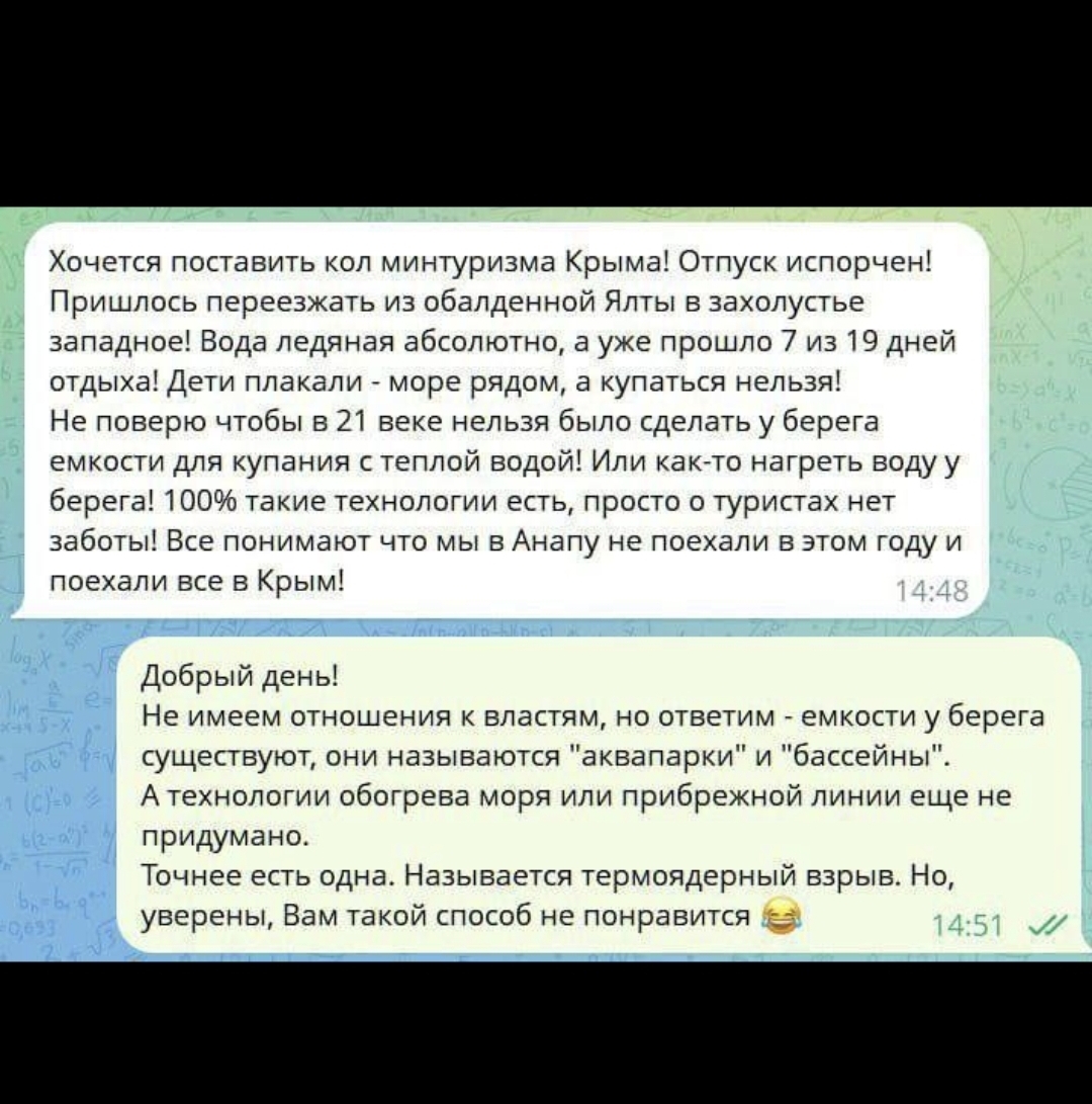 18 NaViloboda 4 месяца назад Баяны Мне кажется, это достойно Пикабу Взято с телеги Крым Сейчас Крым Отдых 1 Ещё 0