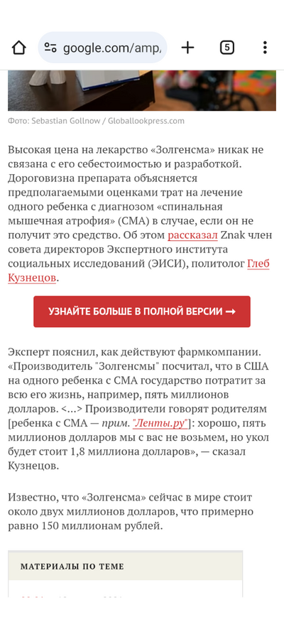 З.Ы. я за 15 лет ежегодных посещений реб центров неврологических видел одного СМА, до сих пор жив курилка, хотя когда его узнал, ему прогнозировали лет 5. Но, там уже совсем не жизнь, кислородные балонны, коляска для поддержи его туши и баллонов за 45 тысяч евро и т.п.