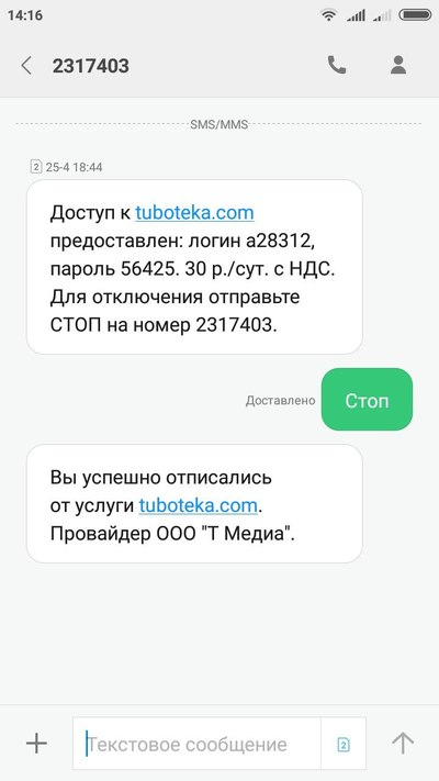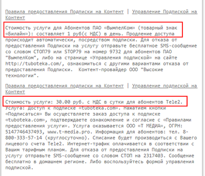 "Очень интересно" - подумал я, особенно при условии, что телефон без интернета лежал в кармане добрых полчаса и никаких смс я точно не отправлял. Естественно, первым делом проверил баланс - а там - 30 деревянных за эту услугу. Что же делаю я? Правильно, отключаю это непотребство и отправляю свой вопрос на сайт ТЕЛЕ 2 следующего содержания "Здравствуйте! Сегодня пришло смс-сообщение следующего характера:" Доступ к media-cloud.biz предоставлен: логин - - - - - - , пароль - - - - - . 30 р./сут. с НДС. Для отключения отправьте СТОП на номер 2317387" с номера 23-17-387. Проверил баланс и там -30 рублей списаны за эту самую подписку, я не заходил в браузер на телефоне, не набирал никаких комбинаций для активации". Ответ обещали в течении суток. И я его дождался