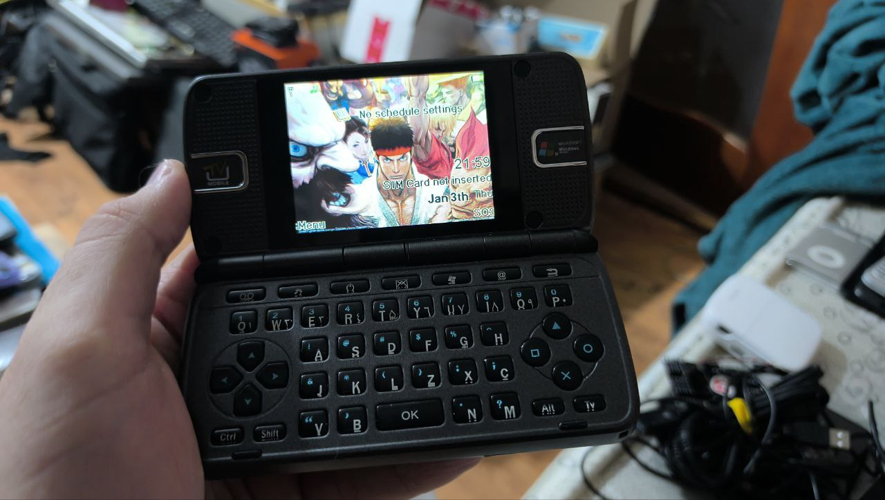 На фото вы могли заметить обои с артом Street Fighter, они здесь установлены с завода и отнюдь не зря. Присмотритесь к клавиатуре внимательно: тут есть отдельный DPad и кнопки PlayStation... Да, китайцы умудрились сделать моноблок, боковую QWERTY раскладушку и игровой телефон в одном корпусе... Это что-то из разряда фантастики!
