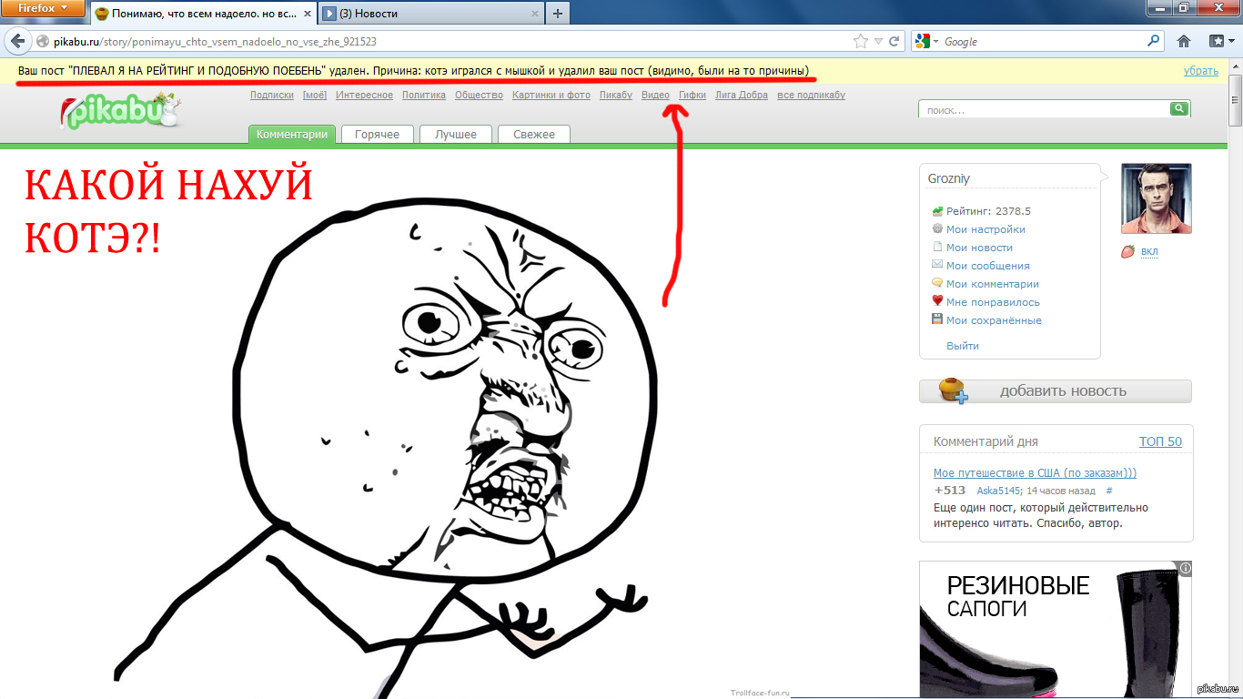 Grozniy мне просто интересно 13 лет назад такая ебнутая надпись, у всех всплывает когда удаляется его нвовсть? [моё] Пикабу