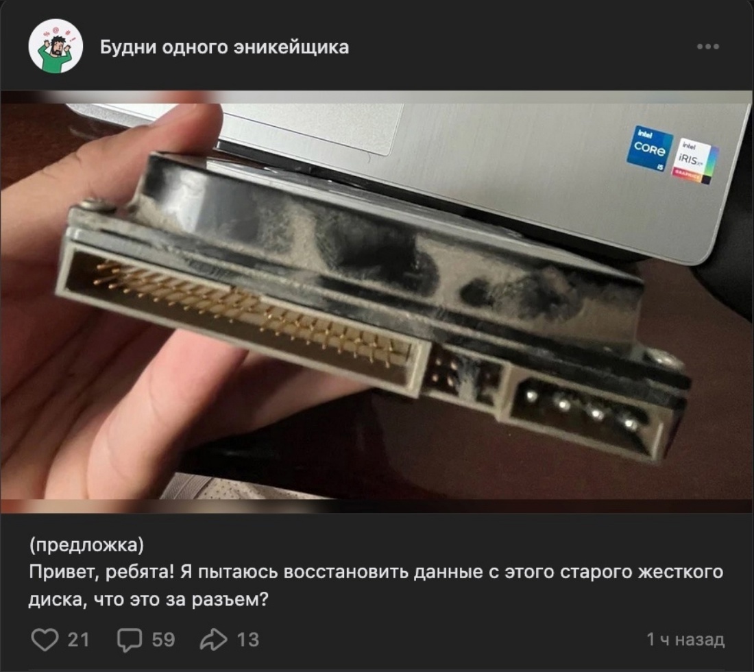 139 kapral30 Мне стыдно за них 9 месяцев назад У самого лежат такие, штук 5. На одном вроде ещё и винда 98я стоит... А парню стоит найти либо старый компьютер, либо купить док станцию, с доп питанием на молекс. Компьютер Диски IDE Молодежь 25 6 4 2 1 Ещё 0