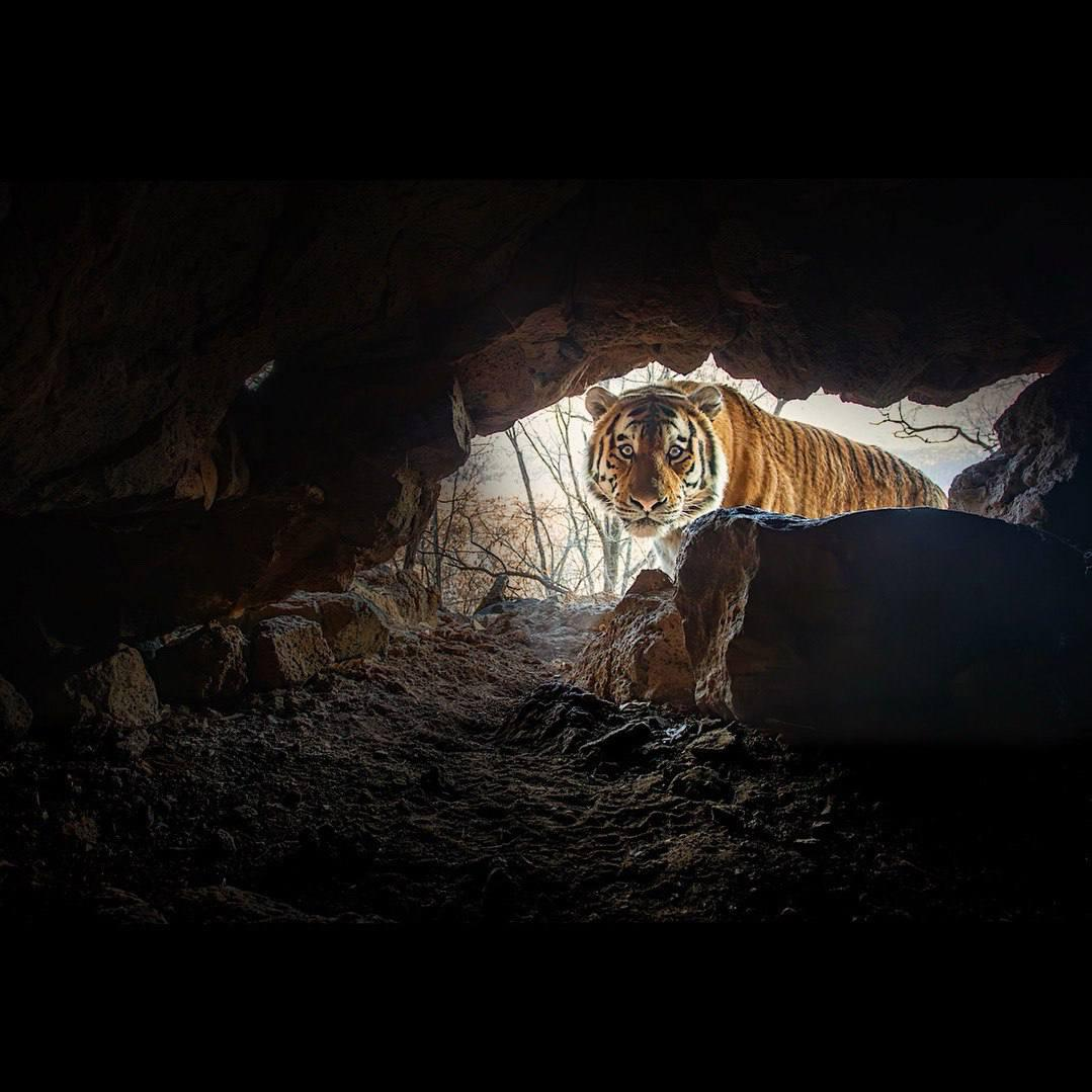 Камера фотографа дикой природы Саши Фонсеки (Sascha Fonseca), установленная в одной из пещер на юге Приморского края, сделала снимок амурского тигра с необычного ракурса.
