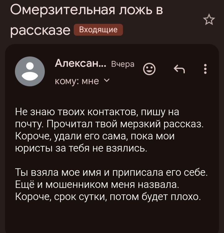И все равно любопытно: этот мошенник действительно посчитал незатейливый ужастик ударом по репутации?