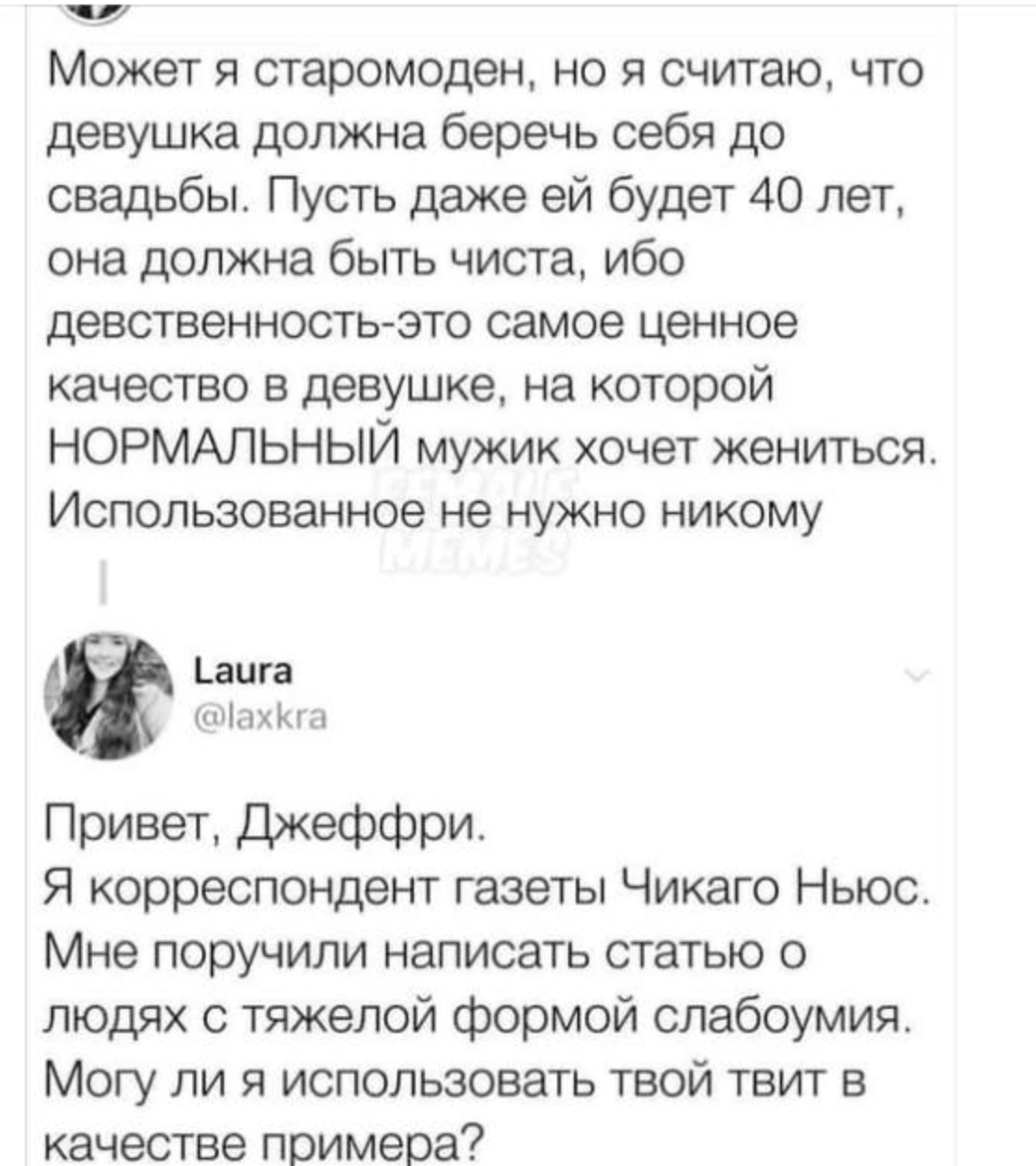 7611 MarusyaKrylova Улыбнись! Мнение7 10 месяцев назад Странный юмор X (Twitter) Скриншот Девушки Девственность Зашакалено Комментарии Повтор Волна постов 304 47 36 11 2 Ещё 0
