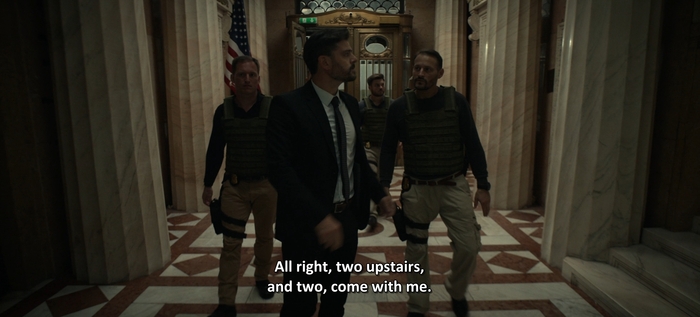 Вот этого мужика ранее нам представили как агента ФБР. Сейчас он почему-то командует какими-то федеральными маршалами, которые пришли ловить Джека Райана.