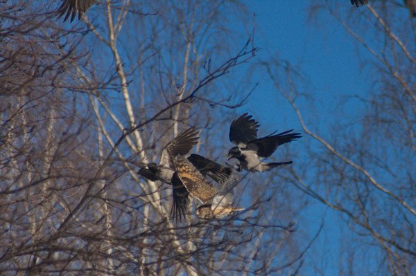 "Спасите, вороны гоняют ястреба!"