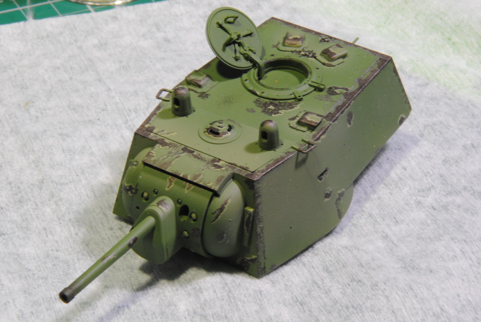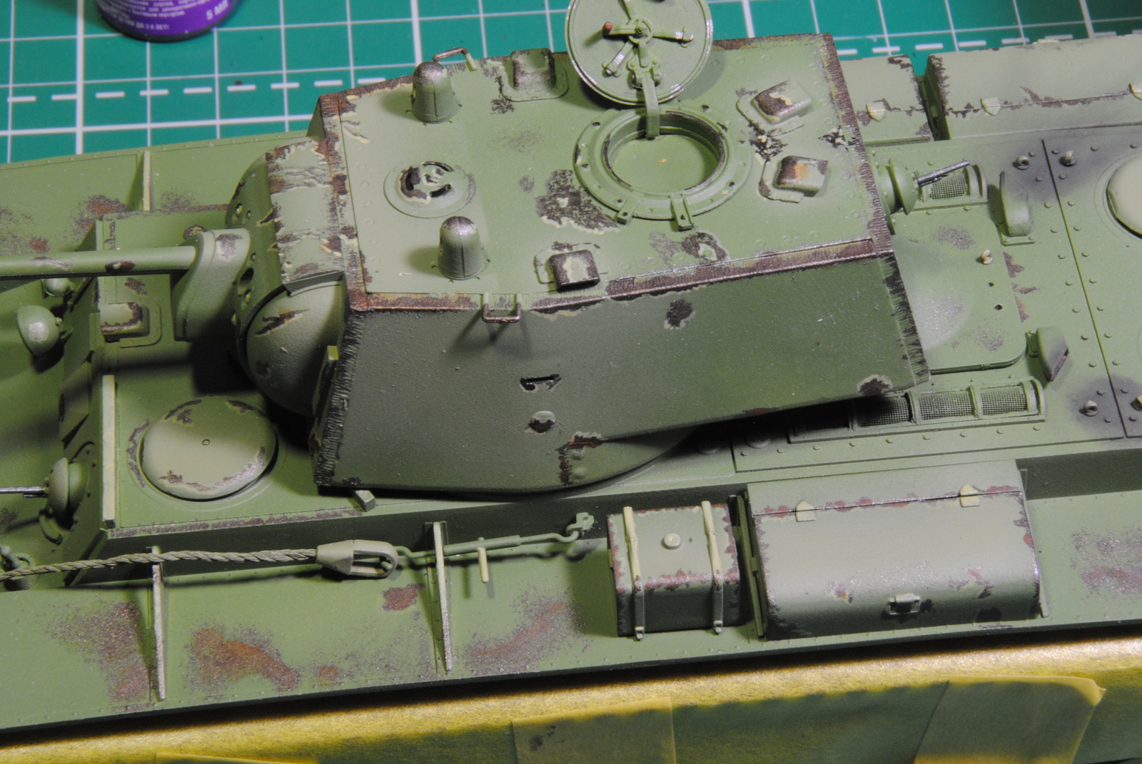 Для сколов использовал метод с губкой и кистью. След от снаряда из шпатлёвки.