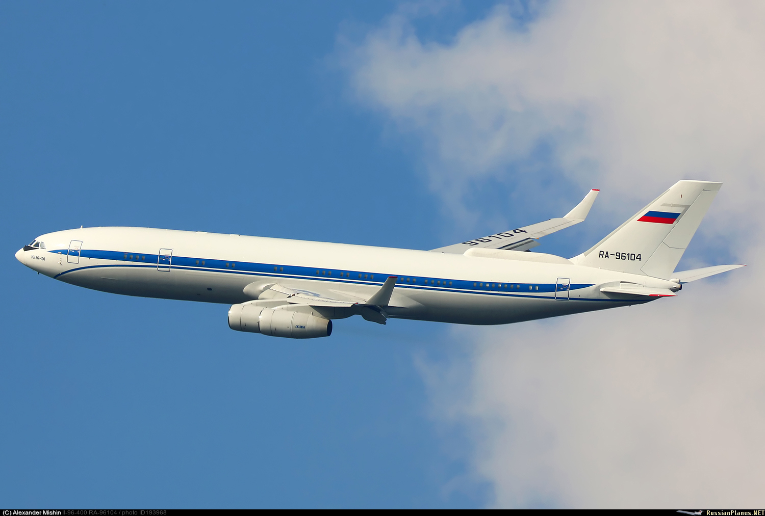 Масштабная модель самолета Ил-96-400, собранная из пластикового набора от "звезды" Ил-86 и набора из смолы "RusAir" Ил-96-300 . Прототипом послужил борт ВПУ ФСБ России с номером RA-96104
