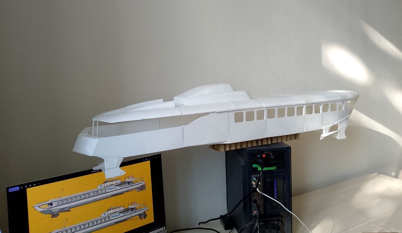 Недавно написал человек с желанием сделать модель СПК "Ракета" на радиоуправлении с ДВС. Нужно было создать 3Д-модель и напечатать в масштабе 1:20. Я взялся за проект.