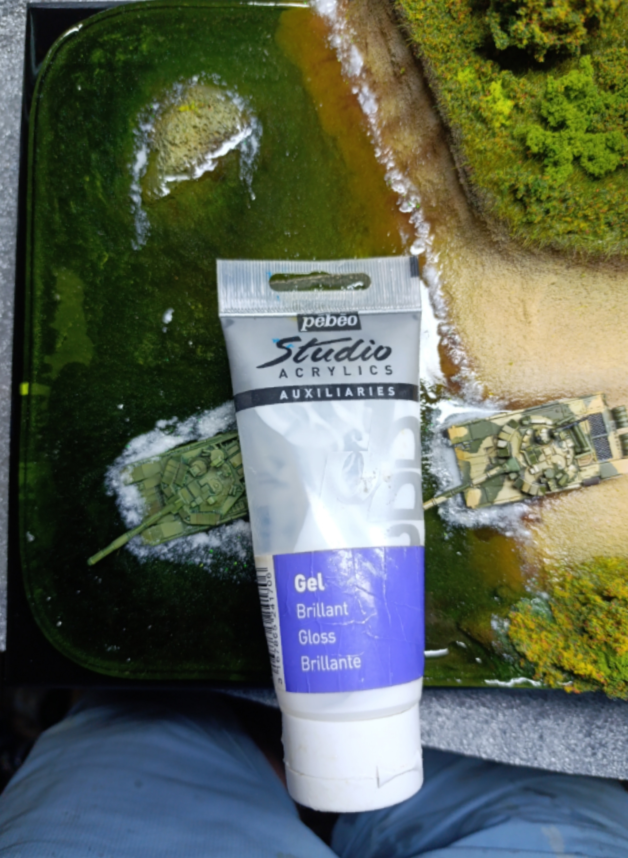 Гели , бывают разных производителей .Мне нравится вот этот на фото .Что в нем хорошего, спросите вы?Он не желтее со временем .И это важно, для меня .Что хотел сказать.На моделирующий гель особой надежды нет если делать диорамы в 35 масштабе.