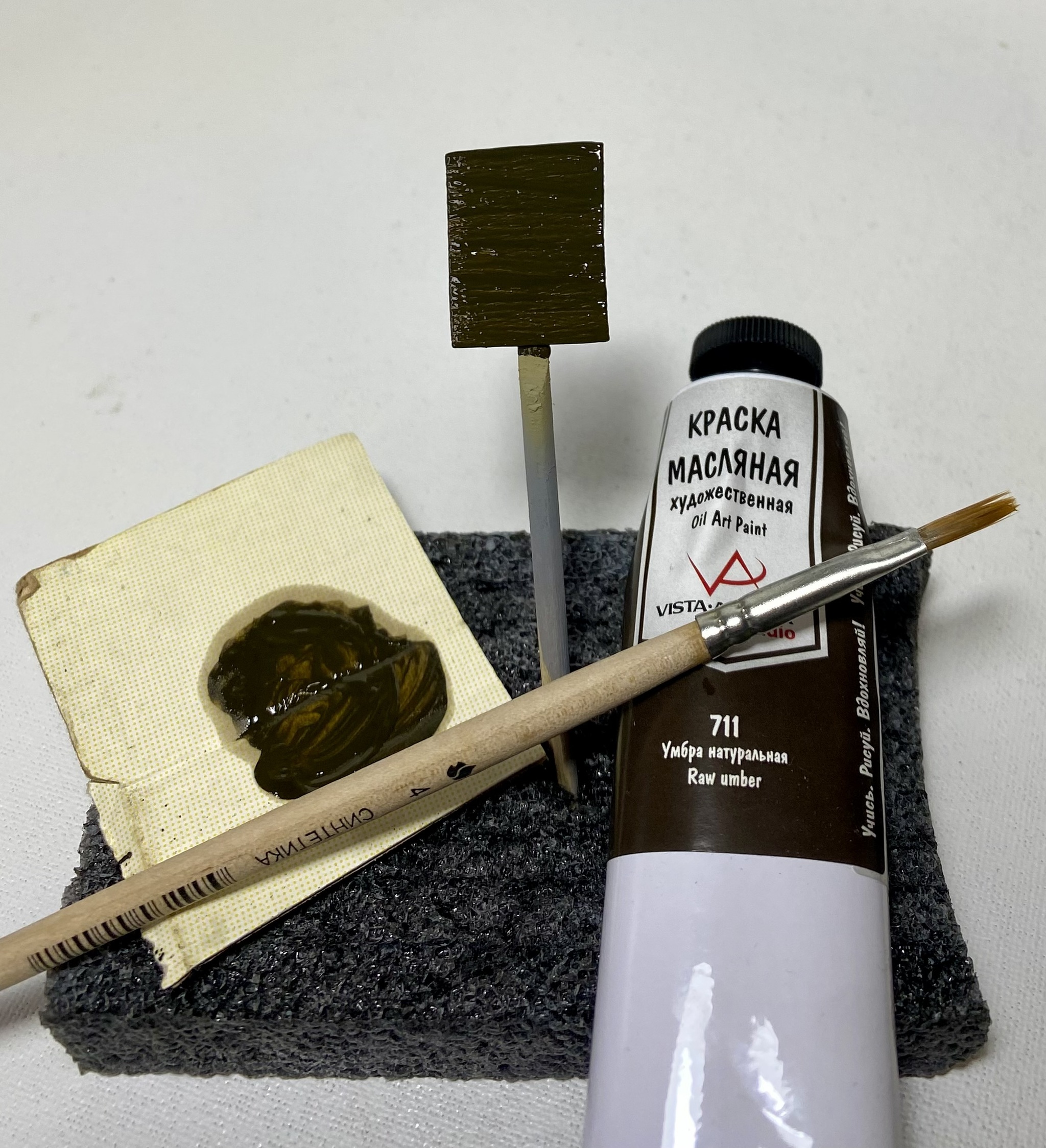 Первым этапом я наношу на всю свою заготовку тонкий слой масляной краски цвета натуральной умбры.