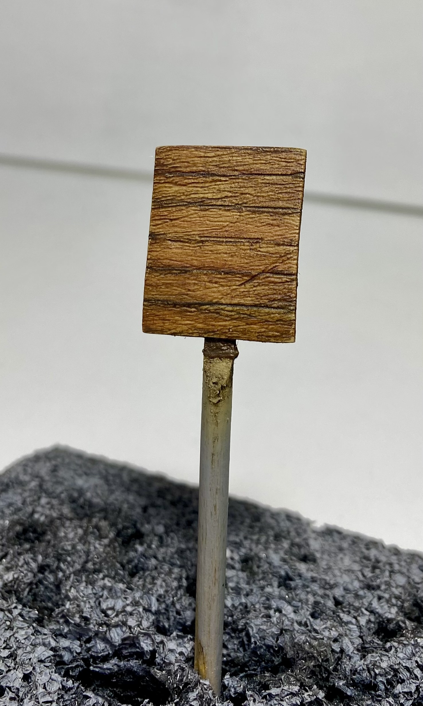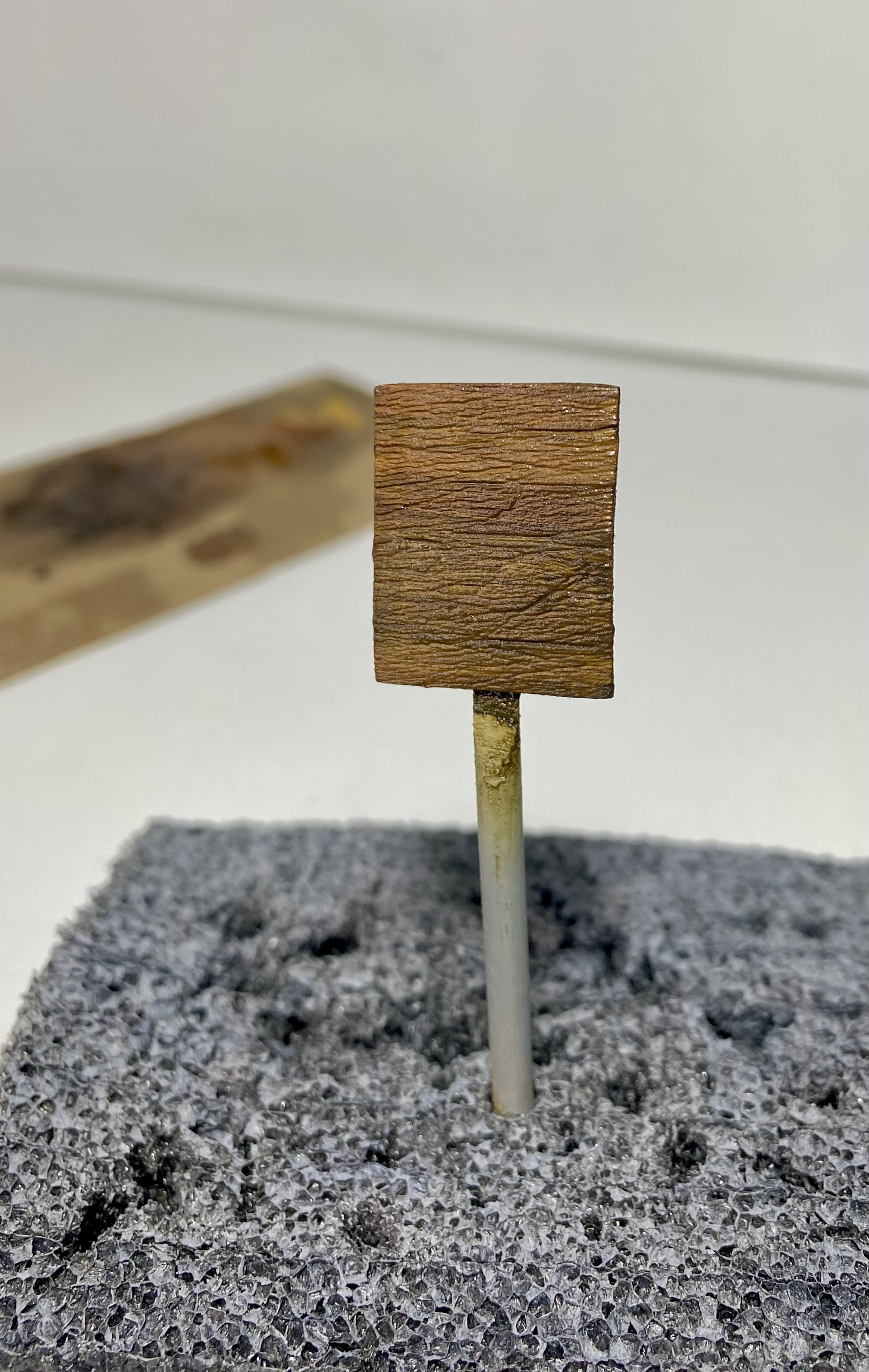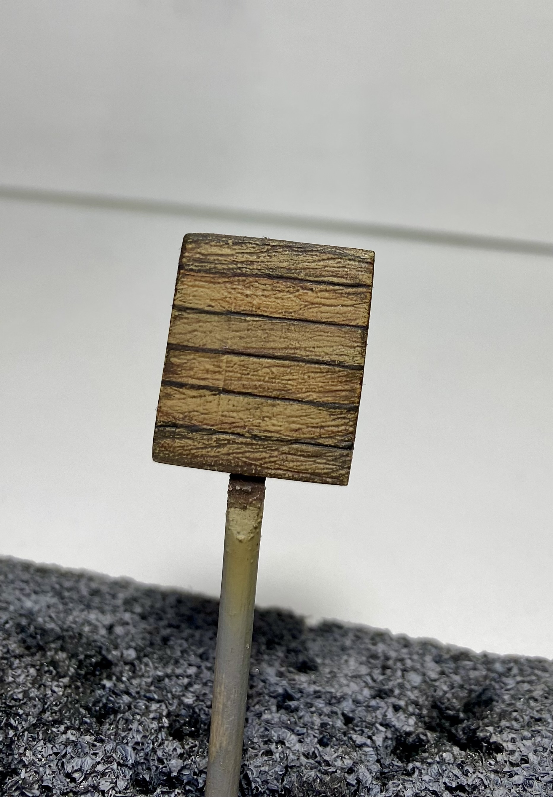 На днях, в ходе финальных работ над моим проектом диорамы о битве за Берлин, появилась необходимость изготовить два деревянных щита для уличных указателей. Работа намечалась в принципе несложная и медитативная, с упором на окрас. Я начитался модельных журналов и принял решение не идти стандартным, обкатанным путем, тем, где я подходящие по толщине настоящие деревянные досочки склеиваю в один щит и тонирую их разной модельной химией. Нет, душа требует новизны.