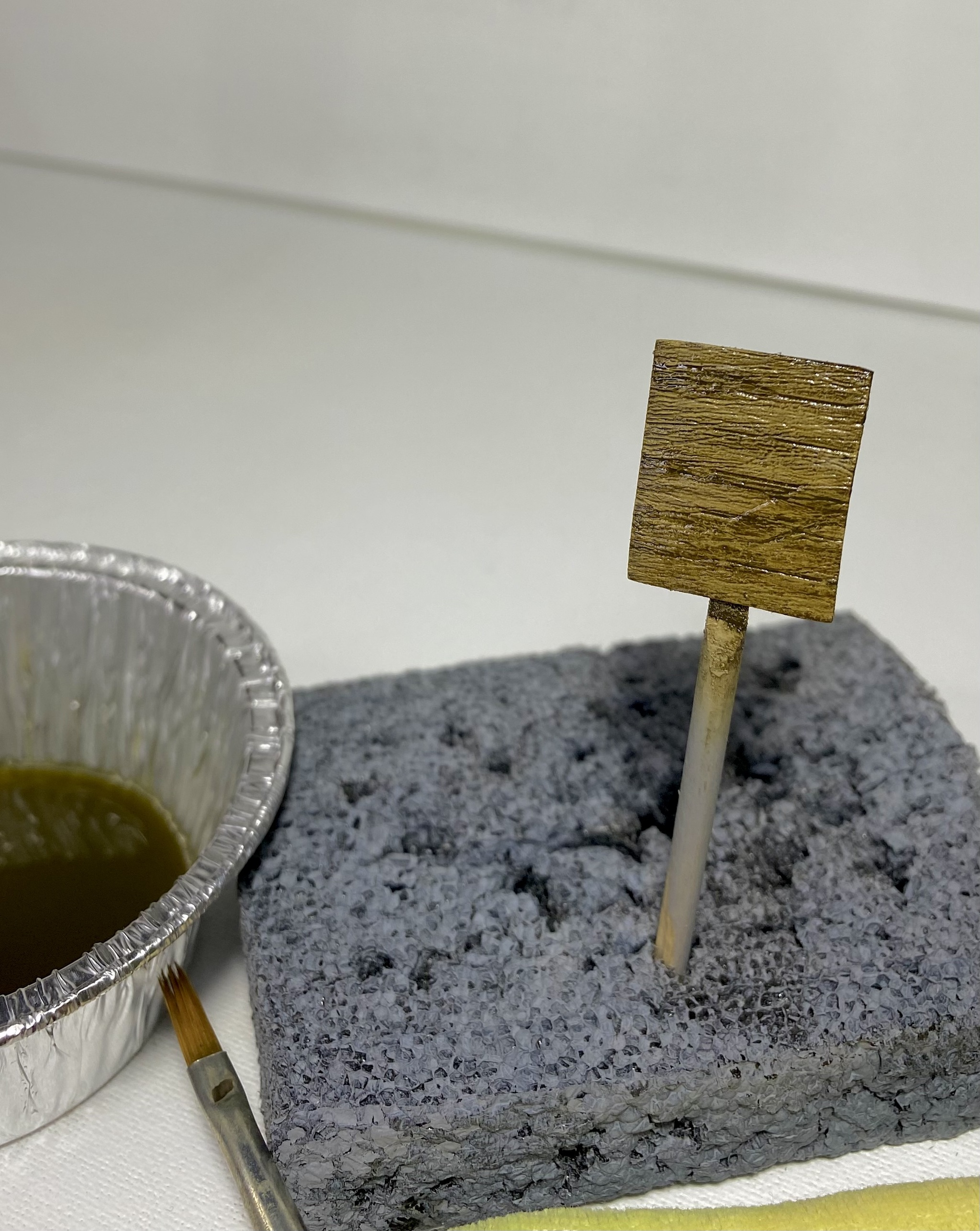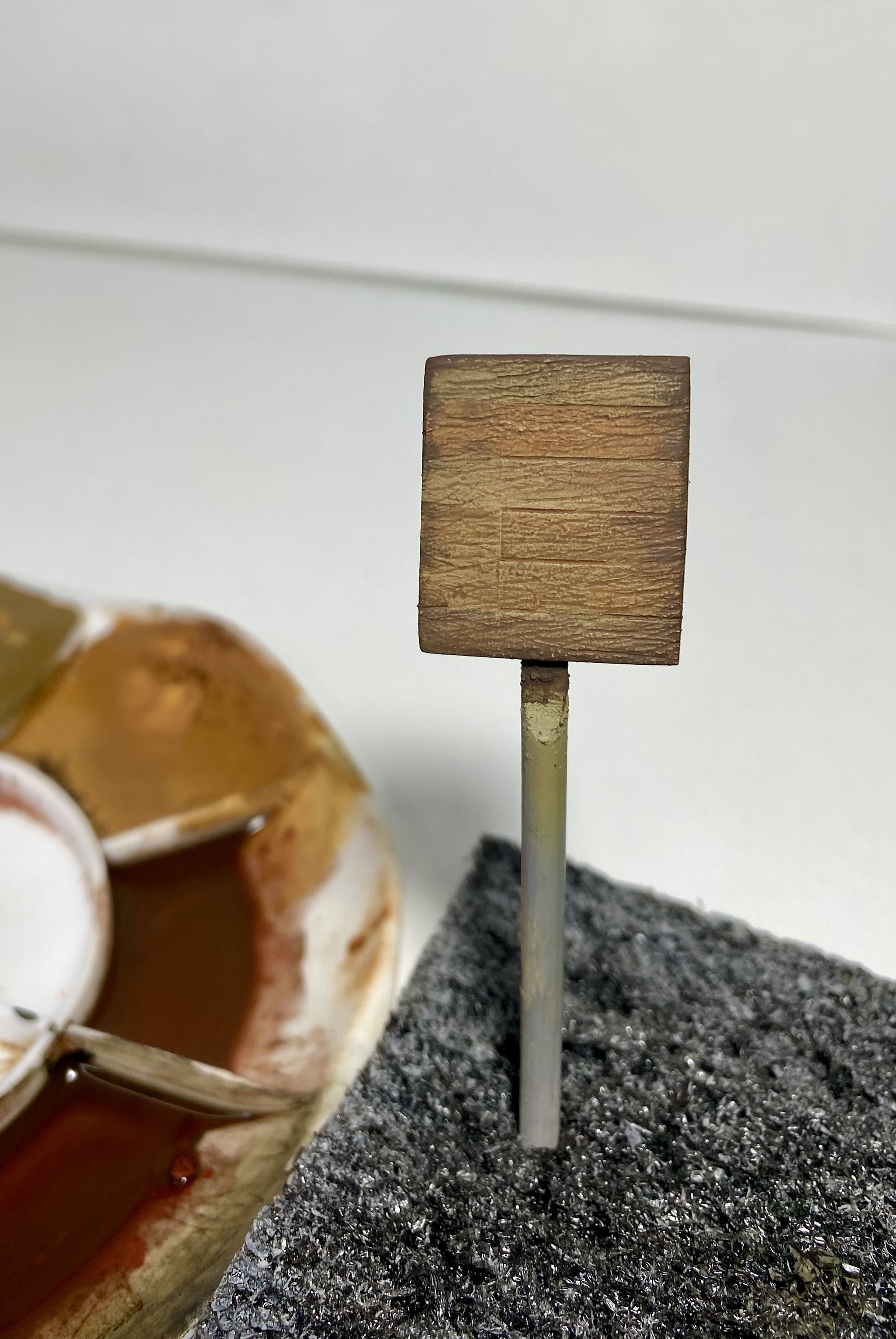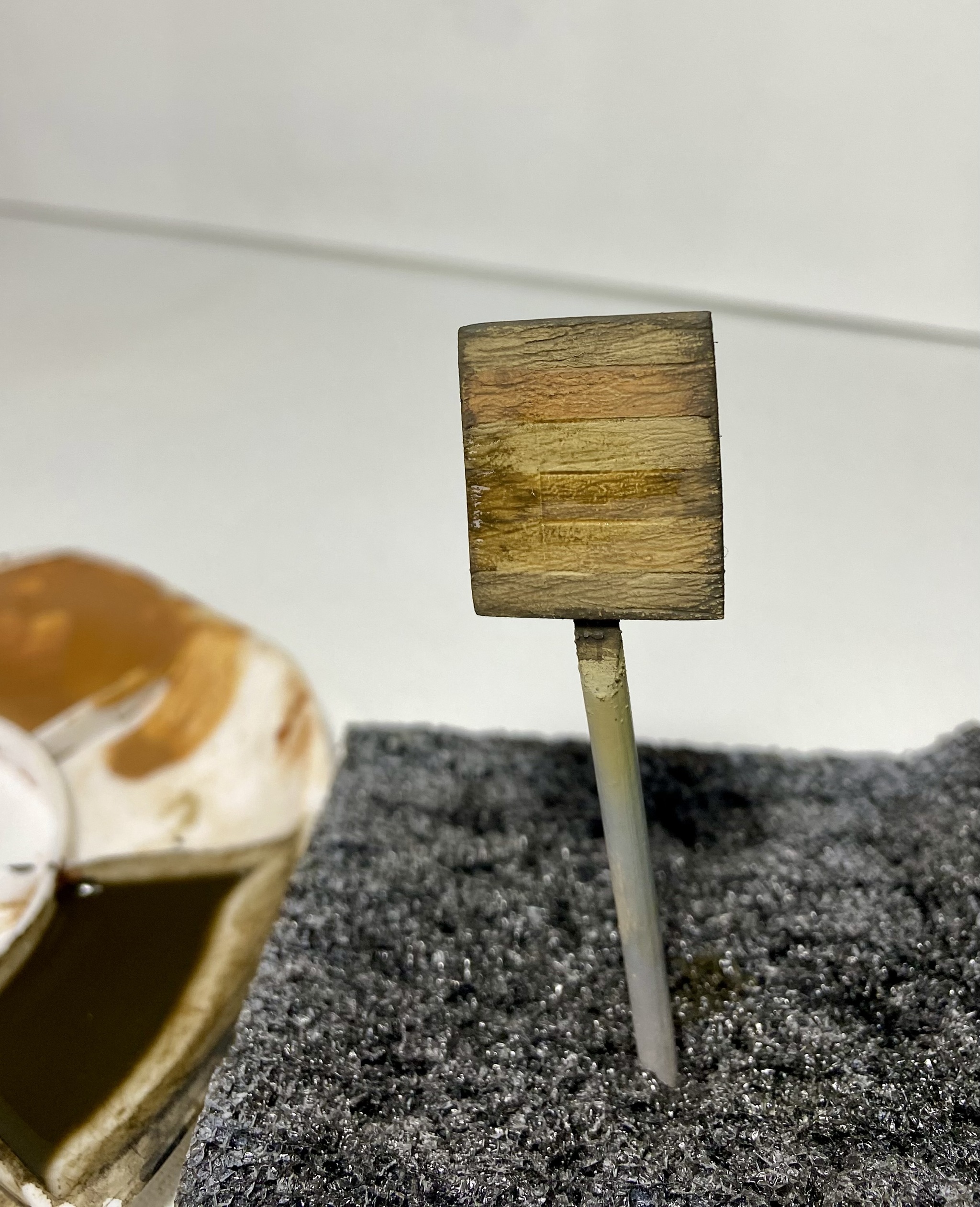 На днях, в ходе финальных работ над моим проектом диорамы о битве за Берлин, появилась необходимость изготовить два деревянных щита для уличных указателей. Работа намечалась в принципе несложная и медитативная, с упором на окрас. Я начитался модельных журналов и принял решение не идти стандартным, обкатанным путем, тем, где я подходящие по толщине настоящие деревянные досочки склеиваю в один щит и тонирую их разной модельной химией. Нет, душа требует новизны.