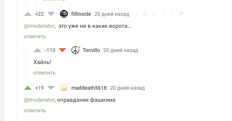 Со своей стороны прошу под этим постом оставлять ссылки на коментарии ( и их скрины) нацианалистического характера, разжигающие и т.д. в отношешении которых администрация сайта не реагирует. К сожалению один я не смогу проделать такой поиск. Просто не хватит времени.