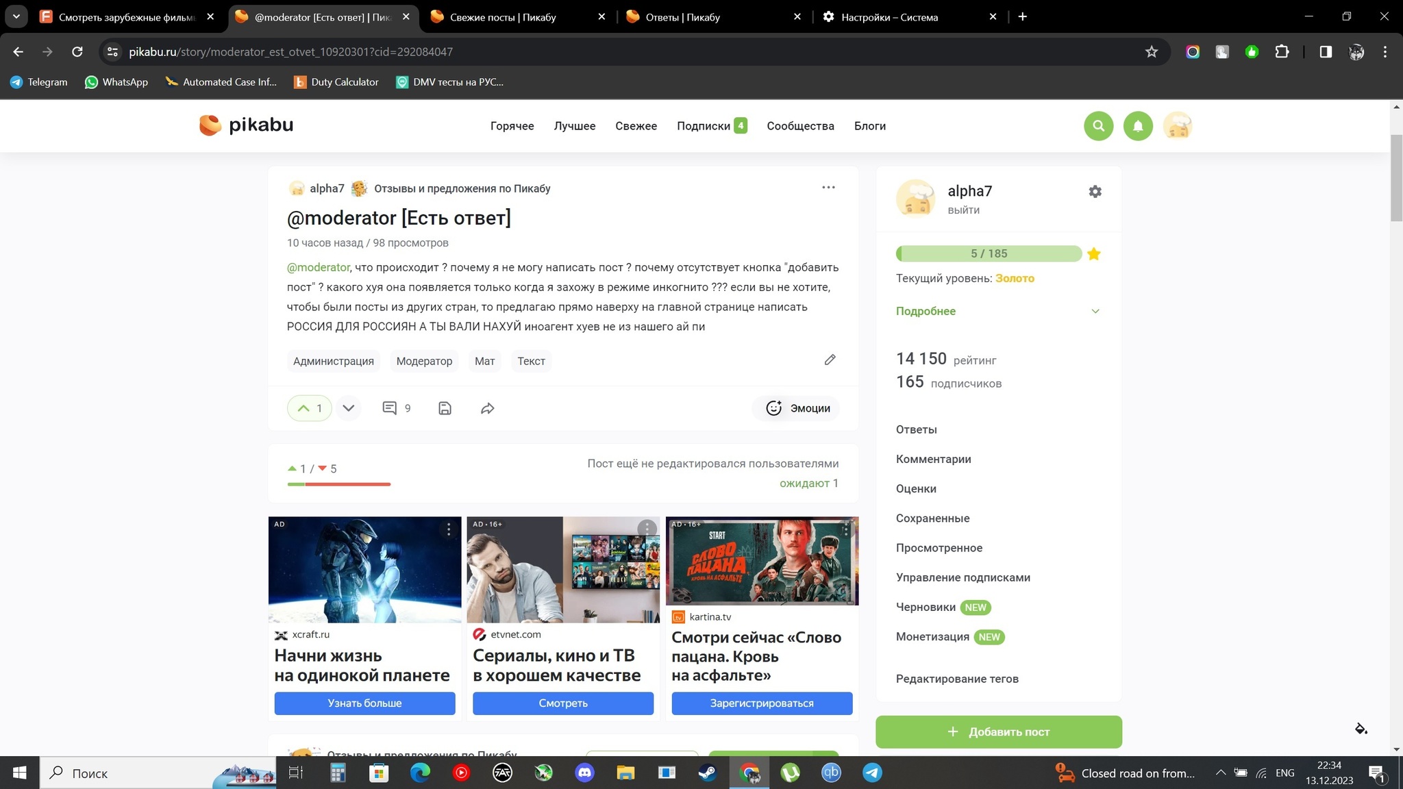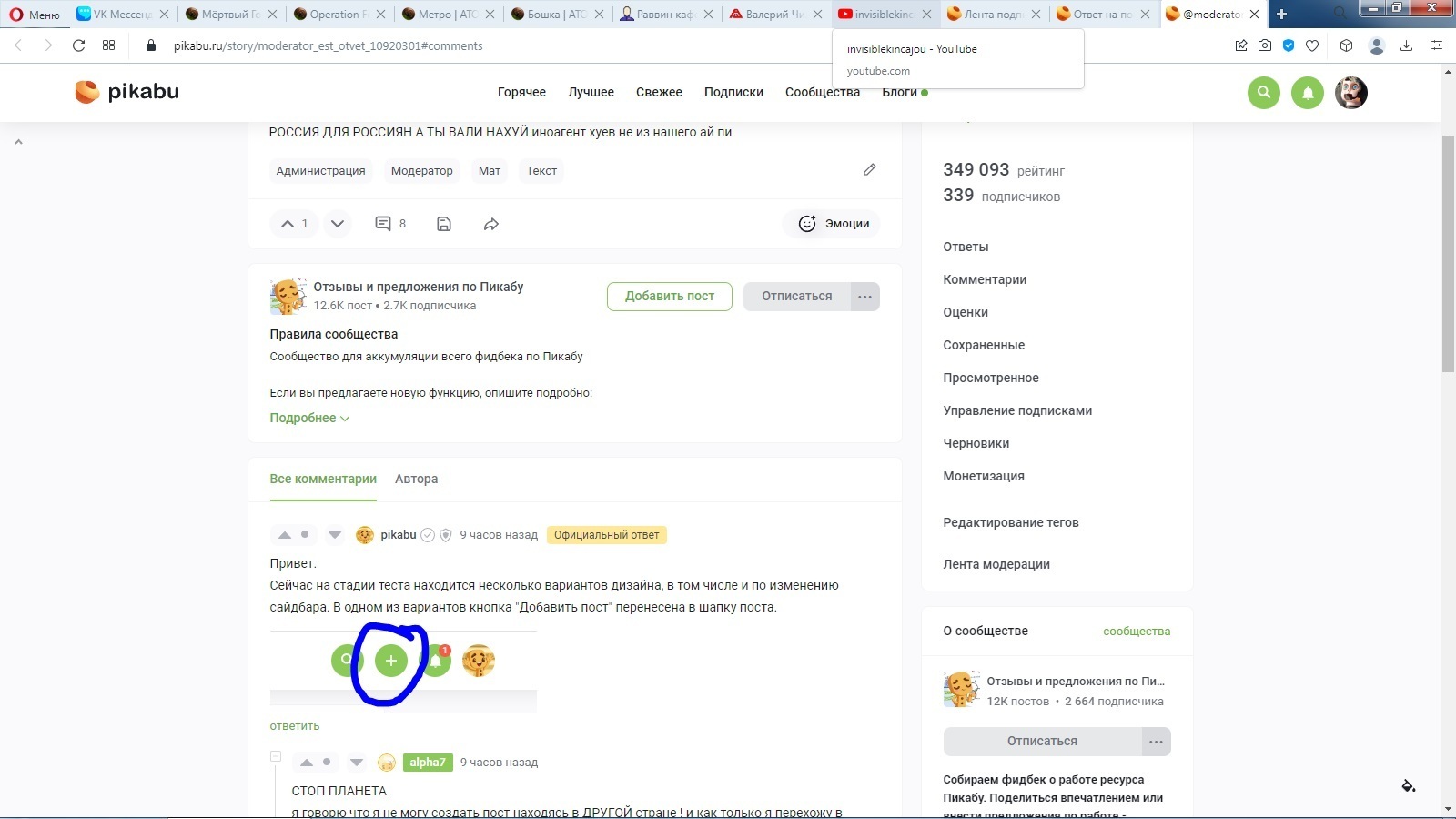 @moderator, что происходит ? почему я не могу написать пост ? почему отсутствует кнопка "добавить пост" ? какого хуя она появляется только когда я захожу в режиме инкогнито ??? если вы не хотите, чтобы были посты из других стран, то предлагаю прямо наверху на главной странице написать РОССИЯ ДЛЯ РОССИЯН А ТЫ ВАЛИ НАХУЙ иноагент хуев не из нашего ай пи