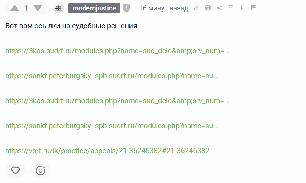 1) Судебные акты должны признаваться модерацией достоверным источником.