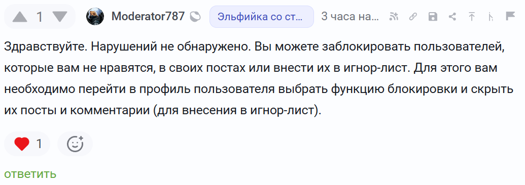 Просто заблокируйте всех недовольных и всё! Если вы не поняли, это был ответ автору первоначального поста. Модератор дал ему совет, как избавиться от назойливых критиков, чтобы они не опровергали его посты.