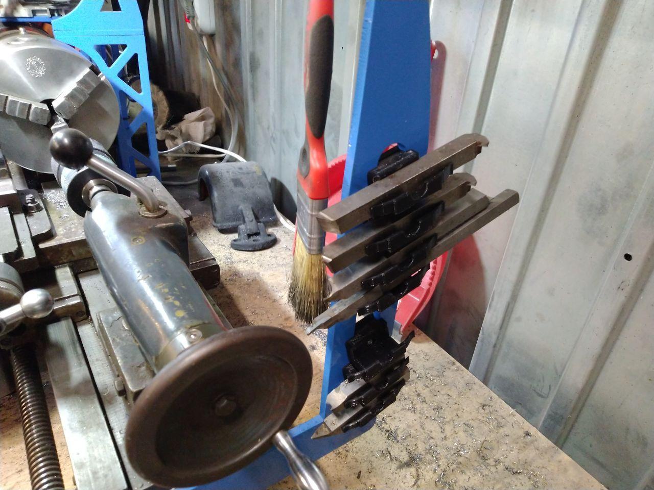 Ложементы под них раздельные, сейчас установлено 7 штук, но влезет ещё 2-3. Но пока не нужно. Сами держатели резцов также напечатаны с вот этой модели. Правда от нижнего язычка я потом отказался. И так прекрасно держится.