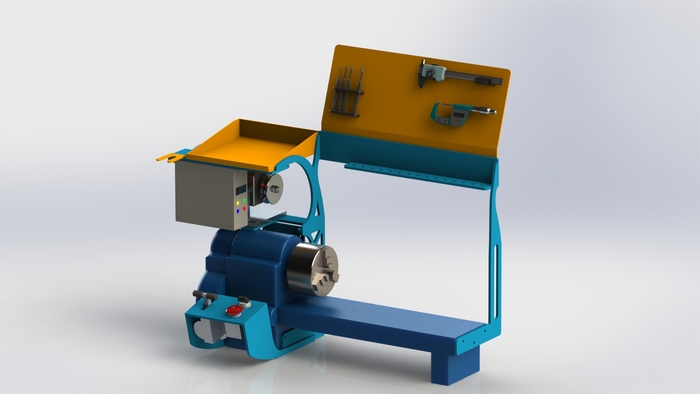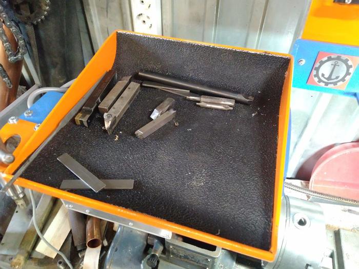 После чего станочек включился в работу мастерской в полный рост. Но... были выявлены некоторые некритичные недочёты. А именно - каноничный деревянный лоток я так и не сделал. А ещё решительно некуда было класть измериловку. Если на 16К20 передняя бабка имеет площадь чуть не квадратный метр и на неё можно натурально разложить всё... а ещё и на задней бабке у меня офигенный лоток, то тут такой возможности просто нет. А хранить точные и не дешёвые приборы навалов рядом со станков - ну как-то не особо. Вощем, не отходя от кассы модель была допилена и... в мастерской появился тридэпринтер! Т.е. его возможности также были учтены. Ну и вот, собсна. Проект: