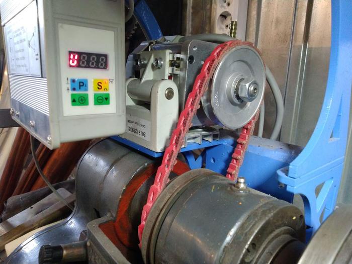 После чего, начался процесс закупки серводвигателя от швейной машинки (600 Вт. моментной сервы против 400Вт. родного, +бесступенчатая регулировка оборотов прям на ходу) и раскрой металла. Делалось всё из шестёрки, даже пульт. Тут много фоток могло бы быть... но будет одно видео.