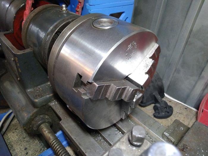 Патрон был разобран, почищен, проточен от ржавчины на большом токарнике и собран обратно. Теперь хотя бы крутится не с метрового рычага (утрирую), а от руки. Гравировочка была нанесена на фрезерном копировально-гравировальном 6Л463.
