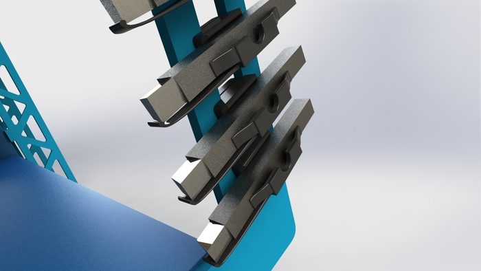 Ложементы под них раздельные, сейчас установлено 7 штук, но влезет ещё 2-3. Но пока не нужно. Сами держатели резцов также напечатаны с вот этой модели. Правда от нижнего язычка я потом отказался. И так прекрасно держится.