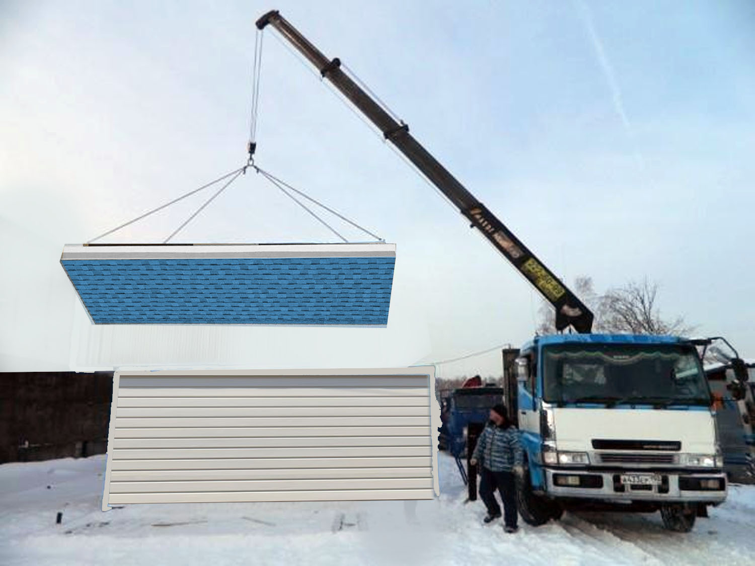 Можно изготовить 2 модуля - пол и стены с окнами и дверью и второй - крышу